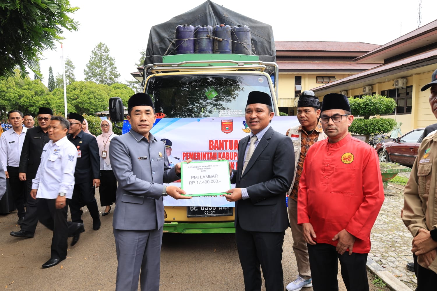 Pelepasan bantuan ditandai dengan pengibaran bendera oleh Bupati Lampung Barat, Parosil Mabsus, yang didampingi oleh unsur Forkopimda, instansi vertikal, dan para pimpinan organisasi.