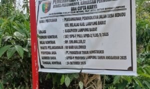 Lampung Barat, RD – Jalan penghubung Pemangku 1 pekon Bedudu dan pemangku 2 pekon way semaka Kecamatan belalau Kabupaten Lampung Barat, menuai jadi sorotan publik. Pasalnya, jalan yang belum lama selesai dibangun itu kini sudah menunjukkan tanda-tanda kerusakan.